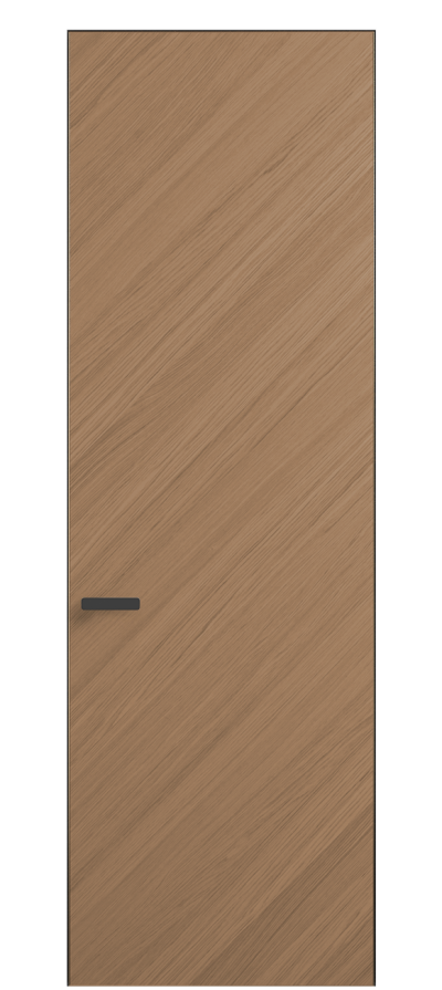 Полотно Рифт в скрытом алюминиевом коробе становится полноценным элементом декора. В коллекции представлено 9 моделей дверей в высоте до 3 метров. Рисунок раскладки шпона варьируется от простого до сложного. «Рубашка» для каждого полотна подбирается вручную по цвету, текстуре и фактуре.